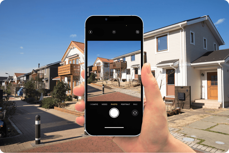 - 不動産業者さまが指定された日時にて、物件の内外観の撮影を行います。